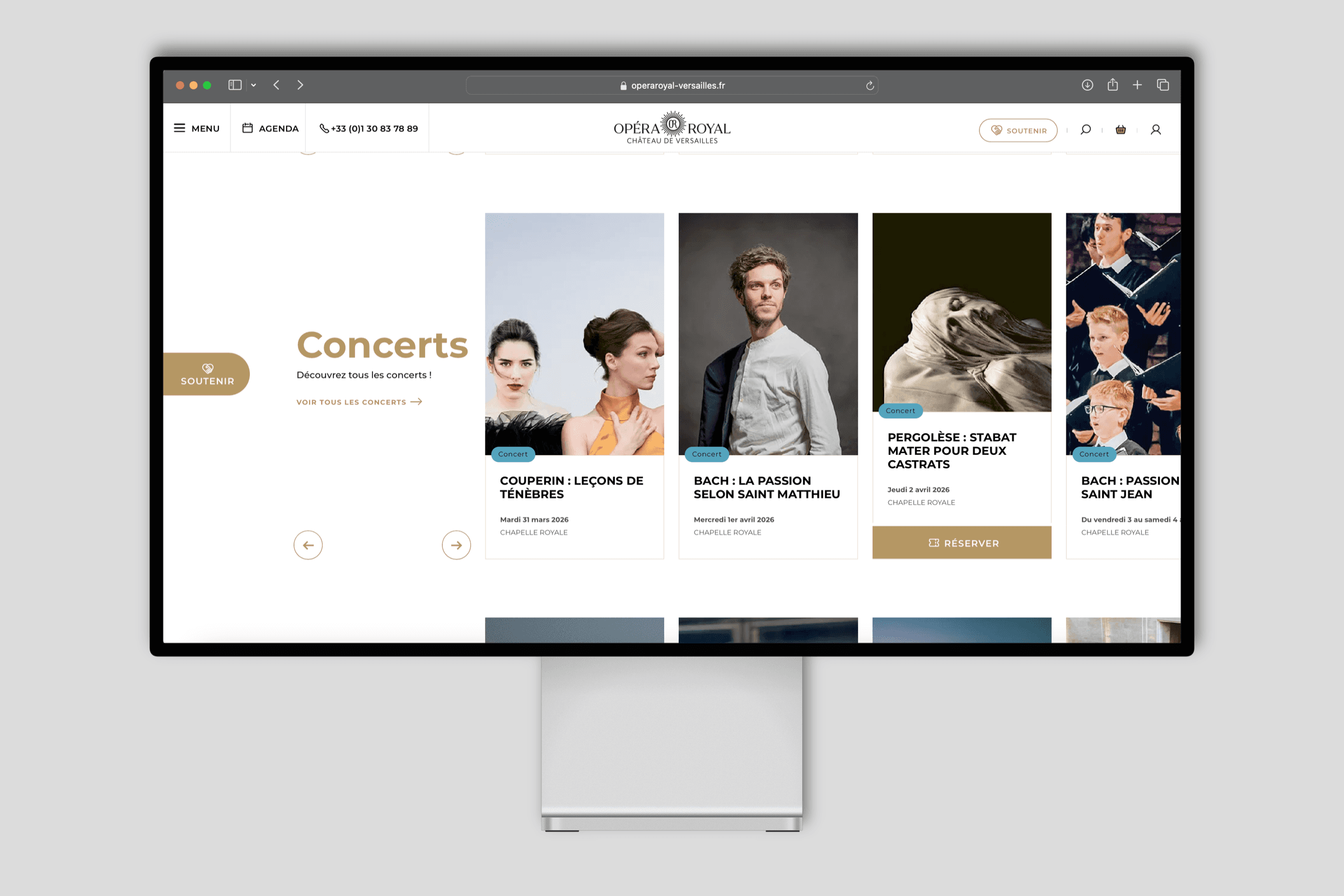 Durant deux ans, j'ai collaboré avec le Château de Versailles Spectacles — la branche dédiée aux animations et à l'opéra — où j'ai eu la chance de travailler sur des supports très variés : leaflets, livrets, pochettes de CD, identités graphiques événementielles, signalétique, et contribution aux sites internet de l'opéra et des jardins. Un poste rythmé par la cadence soutenue des spectacles et événements hebdomadaires en contact direct avec les différents prestataires de production dans le cadre du suivi des projets, qui m'a appris à conjuguer exigence et réactivité avec créativité.